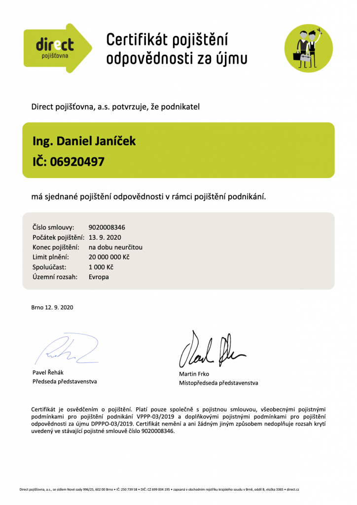 Certifikát pojištění odpovědnosti za újmu