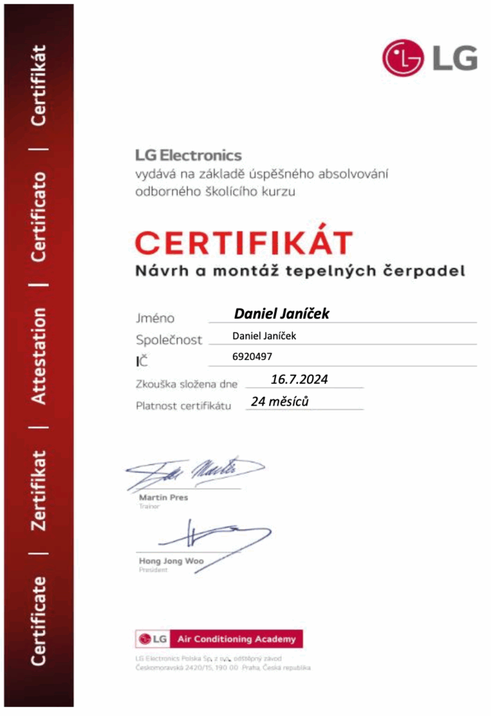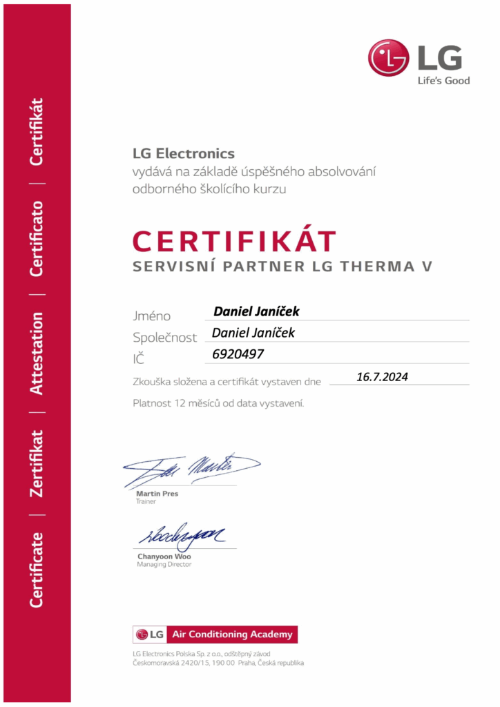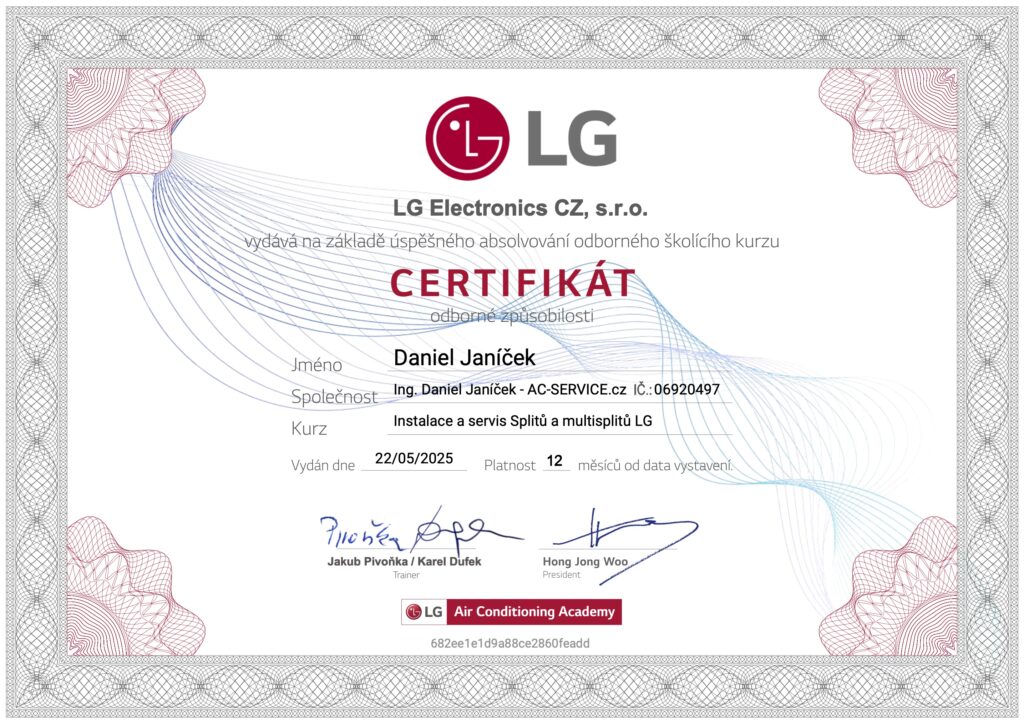 Certifikát o odborné způsobilosti LG Electronics